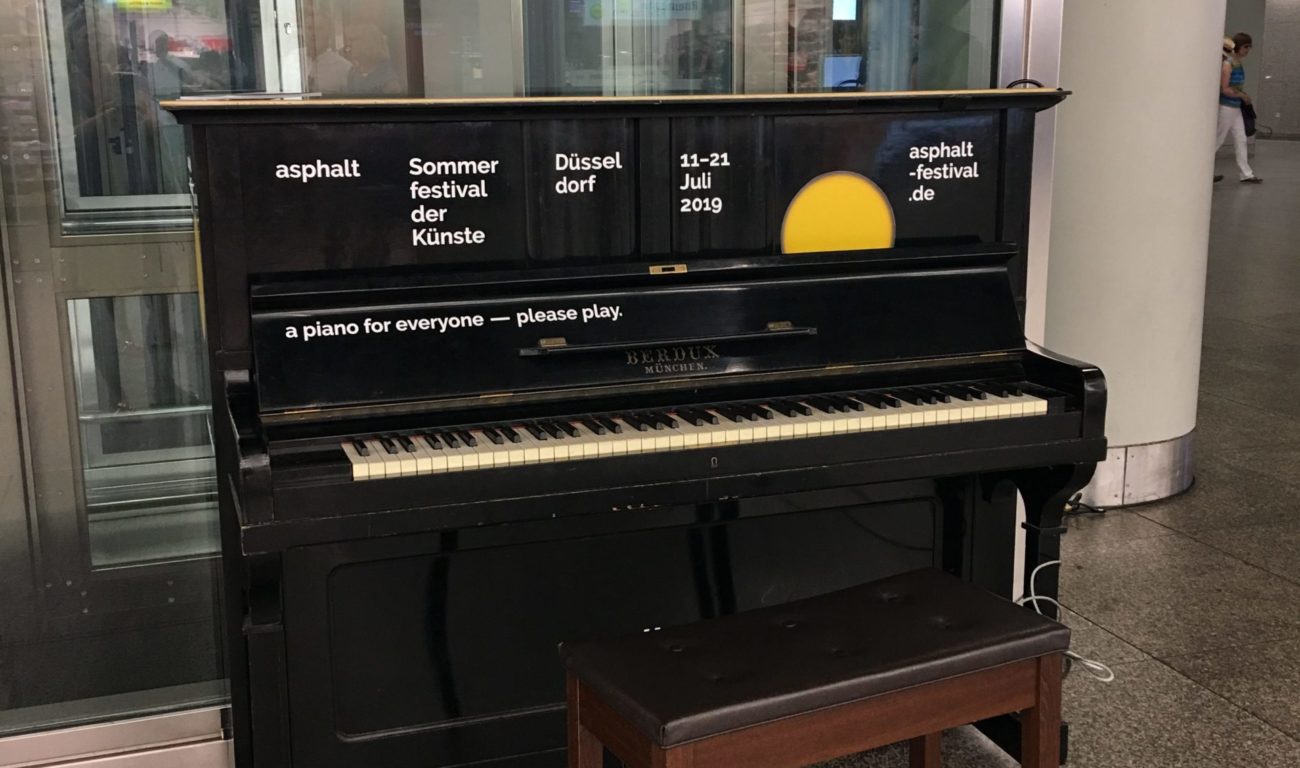 Das Asphalt Festival zeigt Theater, Tanz, Musik, Kunst und Literatur an besonderen Orten von Düsseldorf und findet vom 11. bis 21. Juli 2019 statt. Ab sofort werden die Stadtklaviere den Bürgerinnen und Bürgern der Stadt bis zum Festivalende zur freien Nutzung überlassen.