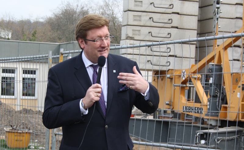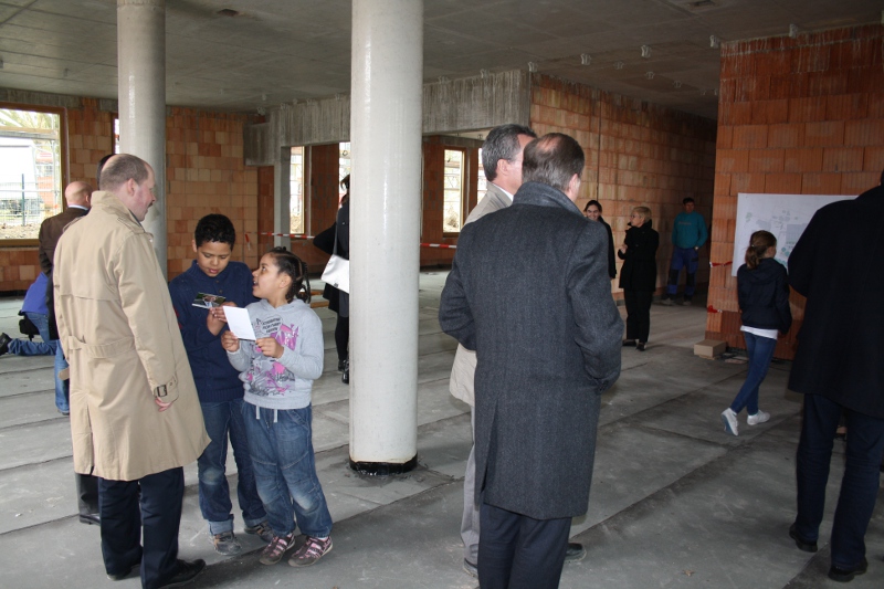 Zu diesem Anlass kam Oberbürgermeister Dirk Elbers an das Lycée, um gemeinsam mit den zuständigen Architekten, Bauleitern und Mitarbeitern der Schule einen ersten Blick in den langersehnten Neubau zu werfen. Dieser ist dringend nötig, denn schon im kommenden Schuljahr wird an der Schule ganztägig unterrichtet.
