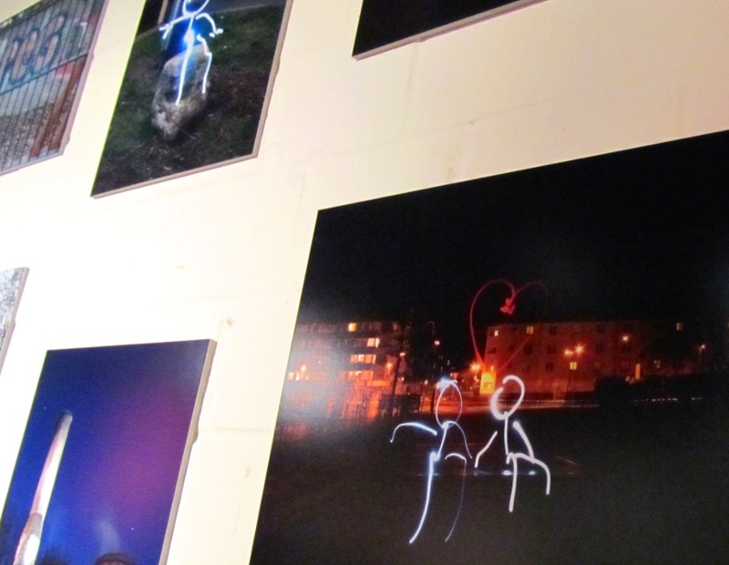 Bei einem Graffiti-Rundgang lernten die Jugendlichen Formen der Street Art kennen, um später selbst Straßenkunst zu gestalten, die ihre Forderungen deutlich macht. Knetfiguren unterstrichen Wünsche nach Spielplätzen und wurden an zentralen Stellen Flingerns postiert. Mit speziellem Kreidepulver und erstellten Schablonen sprühten sie Forderungen auf Gehwege und Häuserwände: nach mehr Skaterhallen, mehr bunten Flecken in der Stadt und mehr Freude. Nur die Polizei fand das nicht so gut. Sie glaubte den Jungs und Mädels nicht, dass in den Spraydosen nur Kreide war und notierte die Personalien.