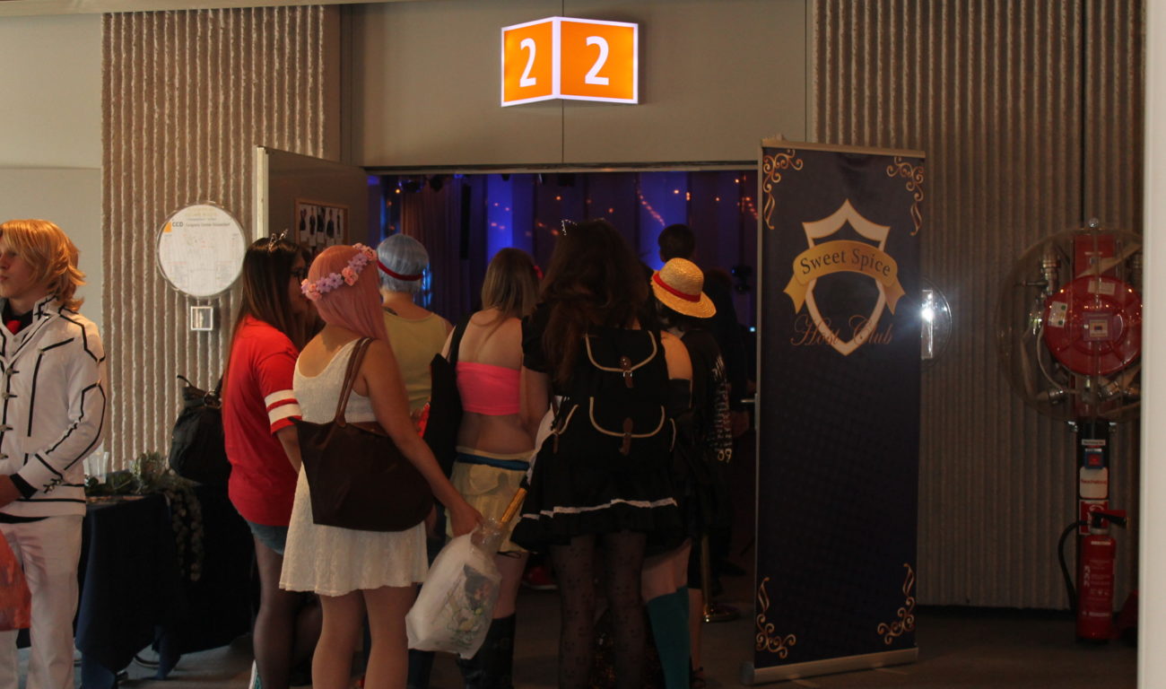 Auf der Convention gab es zwei besondere Cafés: ein Maid Café und einen Host Club. Im Maid Café wurde man nach langem Warten von sogenannten "Maids" (= Dienstmädchen) betreut. Dabei servieren diese nicht nur das Essen, sondern setzen sich nach Wunsch auch zu den Kunden an den Tisch und unterhalten diese.