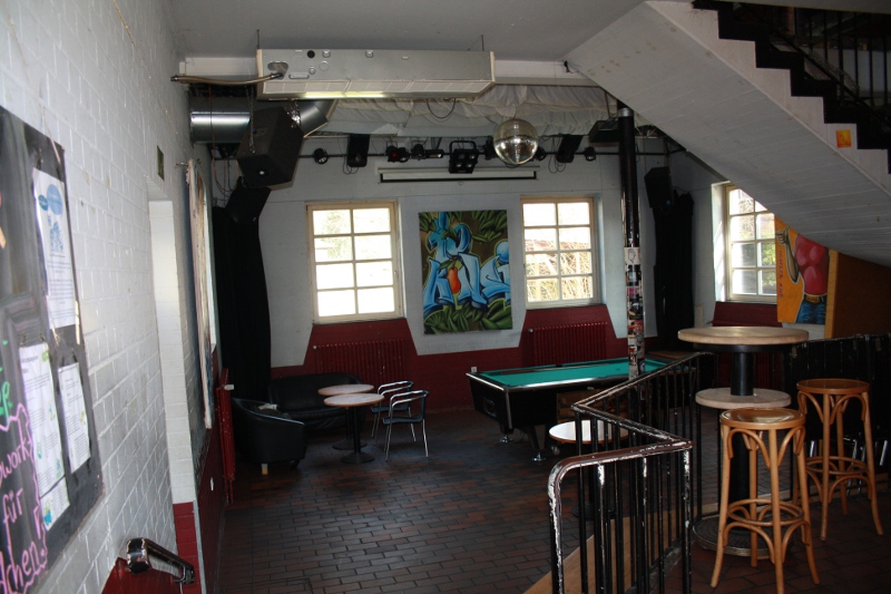 Wir haben zweimal im Jahr etwas größere Konzerte. Die veranstalten wir auf dem Hof mit einer Sondergenehmigung. Es kommen ungefähr 300 Leute. Das ist das "Spilles OpenAir". Dafür bauen wir eine richtig große Bühne auf, das dauert drei Tage bis wir alles fertig haben, da nehmen wir uns echt Zeit. Es kommen drei bis vier Bands, die hier im Umkreis bekannt sind. Dazu verkaufen wir noch haufenweise gekühlte Getränke und es gibt auch andere Aktionen: beispielsweise bauen wir manchmal ein Planschbecken. Das ist das Highlight des Jahres. Ansonsten haben wir dieses Jahr das erste Mal ein Konzert im Winter, das "Newcomer-Fest" veranstaltet. Da spielten sechs Bands, die zwar alle nicht so viel Spielzeit hatten, aber so konnten wir mal die jungen Bands pushen. Und sonst gibt es eben noch die Partys und Konzerte. Da gibt es sehr viele verschiedene Genres, damit alle Interessengebiete abgedeckt werden: Es geht von Hip-Hop und Rap über House bis zu Rock und Metal.