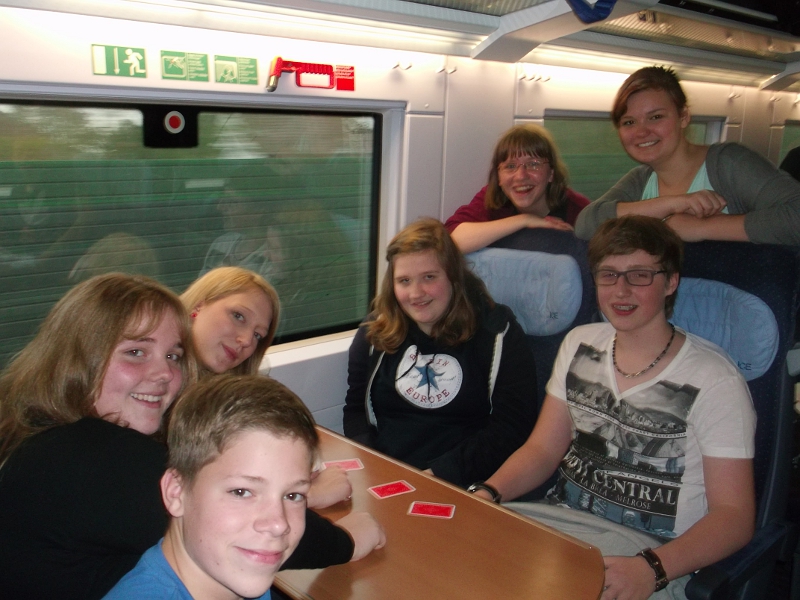 Am Montag, 13. Oktober, begann unsere Bildungsfahrt nach Berlin. Der Treffpunkt war um 10 Uhr das zeTT. Da unsere Gruppe aus bestehenden Jugendrat-Mitgliedern durch einige Freunde und Verwandte bereichert wurde, war es das erste Zusammentreffen in der Konstellation der folgenden Tage. Pünktlich um 10.47 Uhr fuhren wir dann mit dem ICE ab. Während der fünf Stunden Fahrt spielten wir Karten und unterhielten uns, um einen Eindruck von der Gruppe zu bekommen, mit der wir den Rest der Woche verbringen würden.