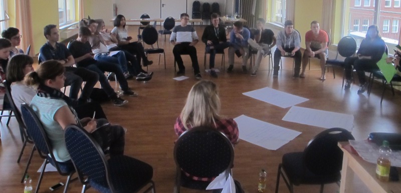 Am Donnerstag arbeiteten wir dann hochmotiviert weiter an den zuvor besprochenen Themen. Am frühen Nachmittag stellten wir unsere Ergebnisse der gesamten Gruppe vor und machten uns auf den Weg zum Bundestagsabgeordneten für Düsseldorf-Nord, Thomas Jarzombek. Der CDU-Politiker unterhielt sich mit uns über jugendrelevante Themen wie die Düsseldorfer Schulausstattung, aber auch über Außenpolitik und insbesondere das Freihandelsabkommen TTIP. Trotz einiger kontroverser Nachfragen unsererseits war Herr Jarzombek sehr offen und ehrlich. Für uns war es inspirierend und motivierend und wir haben uns gefreut, einen so bodenständigen Politiker treffen zu dürfen.